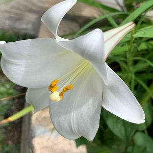 庭に一輪咲いてました。 白いお花は癒されます。 暑い夏を過ごし雨に打たれた後に咲いた百合です。:°ஐ..*