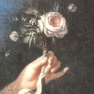 「箱根ガラスの森美術館」の「ヴェネチアン・グラス美術館」にて、宮廷衣装のローブ・ア・ラ・フランセーズに身を包むマリー・アントワネットの肖像画です。🫅 ラ・フランスと言えば、1867年にハイブリッド・ティー(HT)として完成した第一号のバラの名前ですね。完全な四季咲きのモダンローズの先駆けです。🌹🌞