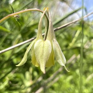 キバナノヤマオダマキ (黄花の山苧環) キンポウゲ科オダマキ属の多年草 ヤマオダマキの黄花種とのことです。 ヤマオダマキの萼片は、紫褐色で、萼片まで黄色のものを別品種として分類しているそうです。 山地の草地、林縁で、 思いがけず、オダマキの花を見ることができました😲 細い茎の先に、花は下を向いて、 シュッと立っていました😆