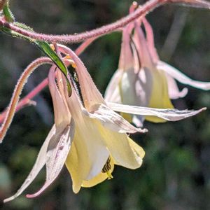 ✼キバナノヤマオダマキ✼ 繊細な形をした可愛い花です♡ 淡い優しい色合いのオダマキが爽やかな風を運んでくれそうですね🍃🎶 草丈30センチ位の茎先に3センチ位の花を下向きに付けています。 横に広がるやや白に近い淡黄色い花弁状に見えるのは萼片で中央部の少し濃い黄色の5枚が花弁です。 ヤマオダマキの黄花種です。 キンポウゲ科 オダマキ属