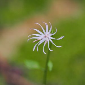 はじめまして❣️… あまりの美しさに、暫し呆然😮💖 エンシュウハグマ(遠州白熊) キク科 別名・ランコウハグマ 葉は茎の下部に輪状に固まって付き、長さ2~6㎝で掌状に3~5深裂します。 頭花は直径約1㎝、花冠がねじれて風車のように3個の小花がつき、色は淡紅色を帯びた白色。 《スライドpic》 ①〜④ いろんな角度から🤳✨… 4枚目・朝露を纏ってる姿、美しすぎ~♡(*⁰▿⁰*)