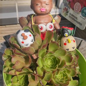 Mikiさんから自立するキモバブが送られてきた🤣🤣🤣💕 🦒帽子のお陰でキモさ隠れてる??? キュピと同じ素材で砂漏れの心配なーしっ🤣🤣🤣 うちのスクイーズキモバブの経年劣化が激しく亀裂ありが増えてきてる😱💦💦💦 ん? 誰かに見られてる?🙄 添え多肉は カッコいい缶に植え替えた #7cハオルチア 🏷️センペルンルン木曜日 もも。さんから頂いた #オータムアップル 枯れ葉出てない……なぜ? #にぃセンペル 逆に枯れ葉がすごい😅
