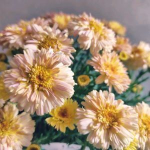 ┈゚・*.♡ PWマーガレット ♡.*・゚┈ 🧡💛マーマレードスフレ💛🧡 なんか、マーガレットっぽくない!! 菊?!マム?!(* ॑ ॑ )ん〜、黄色いきのこ?!🍄 夏越しして、年明けから咲き始めて1ヶ月、ほぼ満開になりました🍊💛 ꕤ.。1枚目…2/1 ꕤ.。2~3枚目…1/29 ꕤ.。4枚目…1/19 この頃の花色がいいなぁ💛🧡💗 ꕤ.。5枚目…1/12 まだ1つも花柄摘んでないです♡ᵎᵎᵎ 花色、まだ変わるのかな(*¨*)?! これが最終かな〜💛 雪降らなくて良かった☔️ 雨も止んだけど、寒〜い一日です🥶 これからも低温予報。やっぱり2月ですね.。❅*⋆⍋。*⍋⋆*❅。.