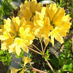 (。・ω・)ノ゙ コンチャ 黄色のツツジ咲いてます 去年剪定したので小さくなりましたが無事咲きました ‹‹\( ´▽`)/››〜♪✿*:・゚✿*:・゚