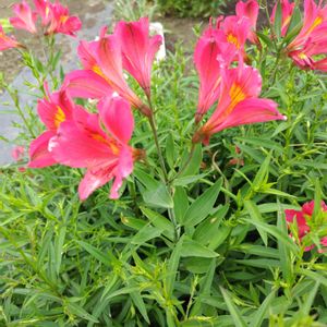 (。・ω・)ノ゙ コンチャ☔ 激しい雨になりましたよ🥺🥺🥺 赤のアルストロメリア咲いたばかりなのに雨で倒れるかも〜( ´ . ¸ . )( ´ . ¸ . )( ´ . ¸ . )