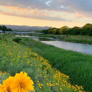 ⚠️オオキンケイギク🌼🍃 鴨川沿い夕日を浴びてきれいに見えますが…実はこのお花、北米原産の多年草。繁殖力が旺盛で🇯🇵日本在来の野草の生育先を奪ってしまう「特定外来生物」として指定されています。持ち帰りや栽培は禁止されているので気を付けましょう✩.*˚ ※今日はお休みなので連投失礼します。