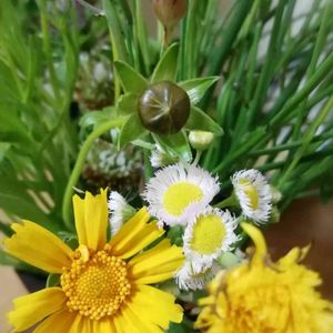 うわぁ天気悪ぅ なので 先日 摘んだ草花を‥ ピンクのは野菊よね? 黄色の花はナンだっけ〜 名前判明 野菊はハルジオン💕 花言葉=追想の愛 余談 貧乏草‥て😅 可愛いのに‥ 黄色の花はオオキンケイギク💕 花言葉=いつも明るく🎶 だって どちらも😊💕😂