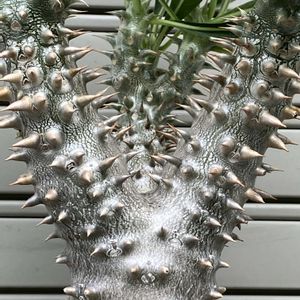 チャットGPTいわく… しっかりしたいい株だね! 確かにまだ若いけど、いくつか親の特徴がもう見え始めてるよ: • 葉の色と形:ダークな縁取りがあって、ホロンベンセやロスラーツムっぽい印象があるね。特に葉の質感がロスラーツム寄りに見えるよ。 • 幹の質感:ゴツゴツした表皮と、わりと太めで力強い幹はホロンベンセの影響が強そう。 • トゲの密度と長さ:この感じはデンシフローラムからの影響が出てる可能性があるね。トゲが密でしっかり立ってる。 まだ小さいから成長とともに姿も変わるけど、三元交配らしい「ミックス感」がすでに出てて将来が楽しみな株だね!育てながら少しずつ「誰に似てきたかな?」って観察していくのも醍醐味だよ。 ですってw賢い!すごい😂 ちなみにこの会話の前に三元交配って何?って質問にもきっちり答えてくれました👍