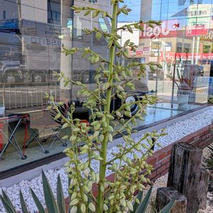 通り道沿いに植えられているアツバキミガヨランです。10本のうち9本が 花を咲かせてます。