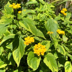 ライムグリーンの斑入りのランタナ 真夏の日差しが似合います☀️