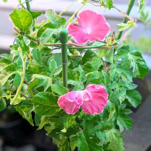 団十郎朝顔、遂に!! ①②今季初の花が咲きました❣️ 暑い中を、といっても、早朝は涼しいですが、頑張って咲いてくれています✨✨ 蕾も沢山控えています💖