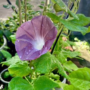 おはようございます✨ ①5月終わりに蒔いた種から… 今朝開花した団十郎朝顔♪ 朝顔は種蒔きから70日目に咲くとのことですが、今年もまったくその通りです✨ ②は昨日のつぼみの様子 色づいたつぼみは少しだけで…あとはまだ小さな小さな赤ちゃんつぼみ👶 ③葉っぱはこんなに茂って後方のサラサドウダンツツジに絡み始めました🌿 ④ヘブンリーブルーも昨年採った種から…生育中です💙 🏷️8日は葉っぱの発表会に参加します🤗 今日もすてきな一日をお過ごしくださいね😉✨ 最低気温20℃ 最高気温30℃ 雨後晴れ