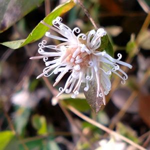 コウヤボウキが咲きだしていました。 くるりん くるりん かわいいね🥰 1年目の細い枝先に1つ花を咲かせます。