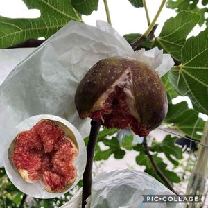 『無花果』昨日は少し硬めだったのに⁉️ 袋掛けして有るので、今日触って袋を外すまで気がつきませんでした⁉️ 虫も付かず傷む事なく綺麗な状態なので軽く水洗いして冷蔵庫に、まだ無花果を知らない小さい孫息子の為に冷やして有ります☺️