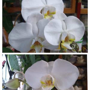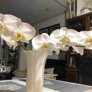 コチョウランです。 自然大好き派😘兼園芸大好き派😍です。 コチョウランは普通の大型タイプですが、我が家には温室が無いため冬越しが大変です😂。ボロ家に隙間風が吹き込むため、ストーブのおやすみ・おはようタイマーだけでは最低温度を確保できないため朝の3時、4時頃の温度確認は欠かせません😅。今年の冬は特に寒かったので開花が例年より1か月ほど遅れてしまいました。苦労に報いる様に今から4か月ほど咲き続けます😊。長すぎて飽きますけどね😅。