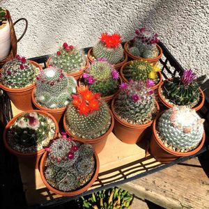 おはようございます☀ 某カフェにて☕️ 入口の前(外)に飾ってありました◡̈❁ かわいいサボテンたち💕