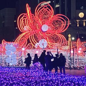 本物のお花じゃなくて大きなお花です〜✨🌸🧡✨ 札幌大通公園で昨夜ホワイトイルミネーションがスタート✨ 突然クリスマス気分😍🎄🪅