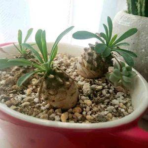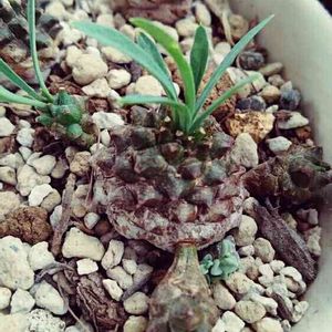 ユーフォルビア属 我眉山。😸😸 仔吹きし易いので下の仔を外し株下が見えるように育てているタイプです。😁