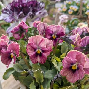 【ビオラ】 ①②③ 『ときめきビオラ シネマティックベイン』 カゴ寄せにしました😊 ④⑤ 種蒔きっ子さん