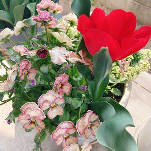花がもう少し咲いたら写真あげようかなと思ってもう1ヶ月。 、、本当に咲かない😂 ときめきビオラのシネマティックベインと葉牡丹のヴィンテージベイン どちらも主張が強くて他の花と喧嘩しそうになるので一緒に植えたらしっくり来た☺️ にしても北陸もう少し晴れてくれないかな🥲