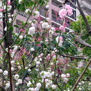 雨風の中の通勤。 気になる子がいると、建物に入る前に寄り道してしまいますよね? ①〜③源平モモ 何枚も撮ったのに強風でブレブレで使えるのが少なめ。傘もおちょこになりました。 ④馬酔木とクリスマスローズ ⑤レンギョウ