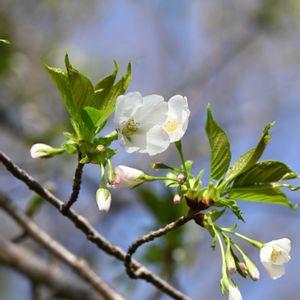 ようやくお花見日和になりましたが 3月30日の 秘密の小径のオオシマザクラです🌸💕🎶 バラ科 サクラ属 日本の固有種で、日本に自生する10もしくは11種あるサクラ属の基本野生種の一つ。 成長が速く再生力が強く古来雑木林に植えられて燃料として多用されたことからタキギザクラ(薪桜)の別名があるほか、 葉が桜餅の葉に使われるためモチザクラ(餅桜)とも呼ばれる。 開花時期は、3月下旬から4月上旬、早いところでは2月に開花する。 緑色の新葉の展開と同時に一重咲きの大輪の花を比較的多く咲かせ、花弁の色は白色、花径は30 - 40mmある。 花弁は5枚で、先が2つに分かれている。 葉は無毛で、鋸歯の先が芒状にのびる。 花と葉は、クマリン由来の比較的強い芳香を持つ。いわゆる桜餅の香り✨🌸🎶 花柄や花序は長く、花は下垂して下向きにつく。 咲き始めは純白の花びらで、緑の若葉とのコラボが、とても爽やかな感じがして大好きなサクラです✨🤍💚🌿🎶 ただし、芽吹きはじめの葉っぱは赤味を帯びている。 昨日、また見て来ましたがオオシマザクラはすでに葉桜となっていました🌿