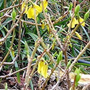 最初、レンギョウと思いこんでて投稿したのですが、花の形が皆さんのとなんか違う? 画像で調べたら雲南黄梅(ウンナンオウバイ)でした💦 いいねしてくださった方がいらっしゃるので、花の名前だけ修正させていただきます。 📷️2025/4/12
