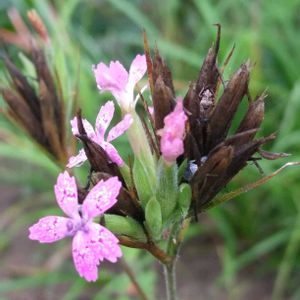 ノハラナデシコ(野原撫子) *ナデシコ科ナデシコ属 花期は5〜7月 ヨーロッパ原産の帰化植物の一年草! 1967年に長野県で発見され、全国に広がっているようです! 高さは40〜70cm 葉は線形で対生! 花は数個ずつ束生し、淡紅色の5花弁で白い斑点ががあるのが特徴! ④雌雄異熟で雄性先熟❗️ 雌性期に入って柱頭が2裂け❗️ 7月11日撮影 福島県 相馬市