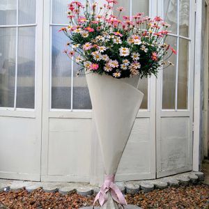 ブーケ型の花台です、 過去に何度か投稿してますが 今回はお花ではなく コメントで花束の花台の明細説明のお約束をしたので 前のシーズンの画像ですが 正面からのがこれしかなくてスイマセン(>_<) モルタル造形と勘違いされてたので これは ブリキで作りました。 鉄パイプを埋め込みセメントで固定したにちブリキで造形したものです、 ブリキは 2重にして溶接で作ってあり 高さ90cm リボンもブリキ 全てブリキ それにペイントしました。 中部に 鉄筋で鉢を載せる台を仕込んであります。 なので 定植鉢を入れ替えすれば良いので 出し入れ自由 その日の気分でブーケの花が変えられます。 鉢を出し入れするだけなので 数秒でイメチェン出来る感じです^^ お水は 後ろしたから排水出来る様に作ってあり 全て防水処理済み 何となく ブーケが花台なら面白いんじゃね♪ てなノリで作ってしまいました^^ 因みにこの時のお花は さくらさくら ぺチュニアですね^^