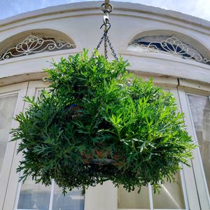 【コンサバトリー ハンギングボール】 見元園芸 ピンクコアラでハンギングボールやってまして これ12月頃作ったのですが 上下反転式では無いので 上と下で 成長の差が出ています・・・・Orz 当初球体ではなく最初ハンギングで作って 後で同じのを作り合体したので 反転式にしてなかったんですよね (>_<)b もう少しで 球体になるんだけどな・・・