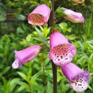 🌸ハイブリッド ジギタリス パンサー🌸 主幹の花を切ったら 脇芽の花が伸びてきて 咲いてきました! でも背が低いです😅 中のヒョウ柄がオシャレです(*ˊ˘ˋ*)。♪:*°