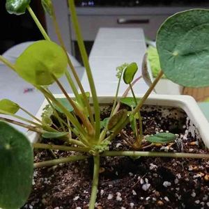 ピレア ペペロミオイデス 越冬に失敗し、枯れて去年一年捨てずに放置してたら ♪───O(≧∇≦)O────♪ まさかの復活‼︎ 捨てずに取ってて良かった。 というより流石に捨てようと 手に取ったら新芽に気付く( ´Д`)y━・~~ 我が家のテーマ 「生と死と再生」 に乗っとっとります。 ここからの樹形が楽しみです。