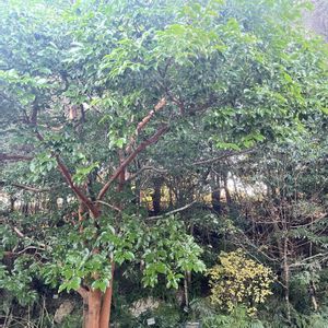 バクチノキ 博打の木 バラ科サクラ属 本州(関東以西)、四国、九州、琉球、朝鮮(済州島) 常緑高木 牧野植物園 1/26 こんにちは この木の周りはまるで初夏の様な雰囲気です🌳💚 とても爽やかな緑色💚 乾燥した冬枯れの季節だとは想像できない瑞々しさです🌳💚(何十日も雨が降ってなかった時) 樹皮がバサバサと剥がれるのも12月迄には終わった様です🌳😍 🏷 木曜日は木に参加します
