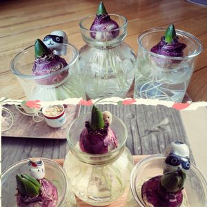 夜分にこっそり投稿中! 昨年の還暦の誕生日に始めたヒヤシンスの水栽培。 12月27日の投稿で、やっと芽が出た報告をしまして、かれこれ1ヶ月以上経ちました。 写真上は、今月1日にパチリ📱 写真下は、今日パチリ📱 撮影角度が違うので、全然生長してないようですが、わずかに膨らみが違うのです☺ それと、三人姉妹に見守り隊をつけました(笑) 右から、 ニャンコ・ゴマフアザラシ・木ウソ(福岡・太宰府)です。 めちゃさんの #ヒヤシスターズ 参加です。正しくは、#ヒアシスターズ です。 この後も見守り隊共々、宜しくお願いします(*゚▽゚)ノ ・・あれれ?? タグ名が違ってるようで・・。 #ヒアシスターズ ですね。 タグを編集し直します✐