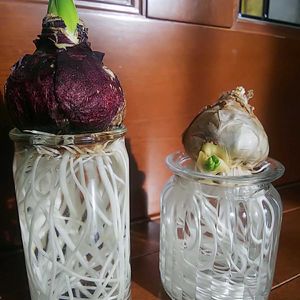 ヒヤシンスとアイスチューリップの水耕栽培開始から、それぞれ35日目・19日目の様子♡ ヒヤシンスは芽が大きくなり、チューリップは茎がスラーっと一気に伸びました。 これからも成長が楽しみ♪♪大きくなぁれ(╹◡╹)♡