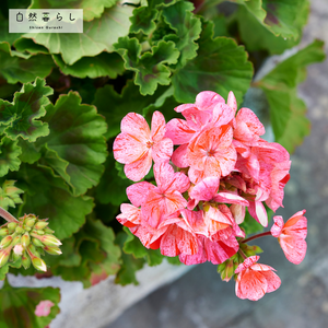 ゼラニウムの植え付け🌼 ゼラニウムの植え付け・植え替えに適した時期は、春~初夏(3月~6月)と夏の終わり(9月)で、暑い真夏と寒い冬を除けば植え替えを行うことが出来ます。 💡鉢植えへの植え付け方法 鉢底に排水用の穴が開いているもので、鉢のサイズはゼラニウムの苗より少し大きいくらいの鉢を選びましょう。 鉢の深さは15~20㎝がおすすめです。 苗の根がしっかり広がることができる程度の大きさが理想的で、苗の大きさに比べ大きい鉢を選ぶと過湿になり、根腐れの原因になります。 大きい鉢やプランターを選ばないようにしましょう。 また、既にゼラニウムを鉢植えで育てている場合、生育が旺盛なゼラニウムは1年程で根が鉢全体に広がります。 1~2年おきに植え替えを行うことで樹形を維持しながら美しく健康的なゼラニウムを育てることが出来ます。 ・鉢底石を鉢またはプランターに敷いて、土壌の調整で整えた土を3割ほど入れます。 ・ゼラニウムの根を傷つけないよう注意しながら取り出し、苗を鉢の中央に入れます。  購入してきたばかりのポット苗の場合、根鉢はあまり崩さず、そのまま植え付けましょう。  鉢増しの場合は、少し根鉢を崩しながら黒く傷んだ根を取り除いて植え付けましょう。 ・根鉢の上部が鉢の縁から約2cmほど下がる位置にくるように調整し、周囲に土を優しく入れながら、苗を軽く固定します。 ・植え付け後は鉢底から水が染み出るくらい、たっぷりと水を与えましょう。 植え付け後の管理として、最初の1週間は直射日光を避け、明るめの日陰で管理し、その後は日当たりの良く、風通しの良い場所に置きましょう。 その後の水やりは、しっかり土の表面が乾燥したのを確認して、水を与えるようにしましょう。 ゼラニウムの育て方のコツはこちら! 《美しいゼラニウムの育て方|水やりのポイントからおすすめの肥料まで》 https://shizengurashi.jp/blogs/flower/geranium