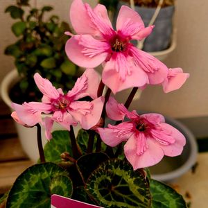 🌼お迎え記録🌼 いただいたカタログの表紙を 飾っているのを拝見したときから 目を奪われました😊 #ハクサン さん #シクラメンイリュージア 可愛らしい色合いのピンクと 上向きが魅力的な シクラメンです これから、楽しみです♪
