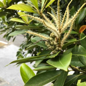 昨日、買い物帰りに見掛けた花🧐 ジミだけど、なんか気になる🤔 レンズアプリ調べで、マテバシイと出てきたドングリ? そういえはを、コロンコロンとしたあおい 実?も付いてた❗️