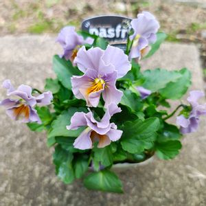 こないだ園芸店に行ったら、またまた見つけて買ってしまいました💦 パスフリ ビオラ?パンジー?です。 灰色のような青紫のような、綺麗な色です。 株もしっかりしていたので、このあと、鉢におひとり様植えしました。 育種家パンビオに一度ハマると、色々気になりますね😍