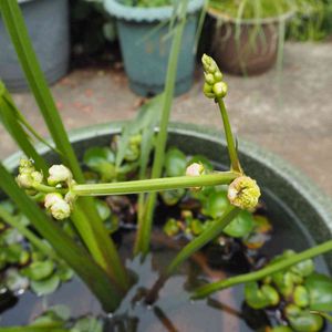 ヤエオモダカ(八重沢瀉)の花芽が上がってきた 杜●園●で発注したのだけど、プラポットから植え替える時に小指の爪より小さいクワイ(慈姑)がひとつしかなかったので不安になり問い合わせをした 「出荷時はクワイひとつですよ♪上手に育てば来年にはクワイが10個くらいになります!」 クワイひとつに660円かぁ…と思わなくもなかったけど、ぐんぐん育ちとても元気だ 花が咲くのがとても楽しみ