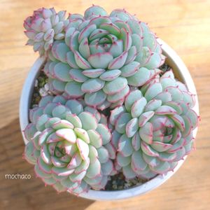 オーストラリアキャプテンヘイ✨ 葉の縁が赤くなって可愛い😍 なにかのオマケで頂いた子です 静夜×プロリフィカだそうです😊 最初オーストラリアキャプテンハイだと思ってました😅ハイではなくヘイ! 小さな小さな苗だったけどここまで成長しました😊 可愛いから増やしたいなぁ🥰 春にバラす予定 葉挿しでも増えそう そろそろ水やりしたいな 氷点下にならない日が数日つづきそうだからチャンスです😆