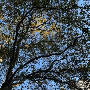 ハッピーサンクスギビングデー カエデバスズカケノキ NYもブライアントパークの空 綺麗な青空でした