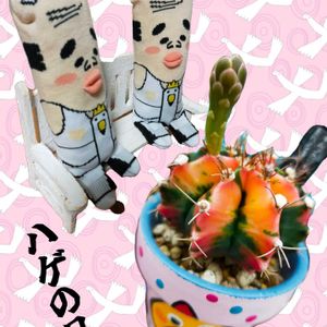 本日は、ハゲの日!だそうで🤣 1枚目 先日、たまたま見つけたオモロ靴下(白鳥の湖の服着たハゲオヤジ)で作ったソクオヤジで参加🤣🤣🎶 ギムノちゃんの花芽がまた出てきたよ〜!!今はハゲ頭みたいなのでこの子にしました〜💕 2枚目 家のハゲた(枯れた)植物たち😭スーパーアリッサムもバラも葉牡丹もハゴロモジャスミンも枯れちゃった〜😱💦💦 白鳥の湖の服と言えば、マイメロちゃんのバカ殿キュピちゃん!!ソクオヤジとコラボ🤣👍️🎶