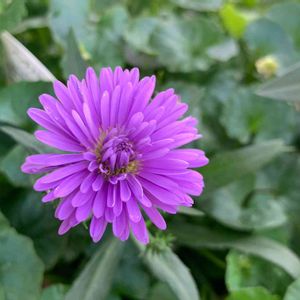 もりもり〜のパンダスミレ🐼の鉢から アスターがひよっこりはん😊 去年寄せ植えしてていつのまにか お花が終わってたので存在忘れてた😅