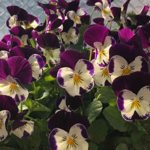 ビオラ- ̗̀𖤐 ベランダで朝、ニコニコ😊(#^.^#) 元気です。 "ꉂ😝💙💚