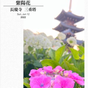 夕焼けMax😆 紫陽花寺と呼ばれる近所のお寺にて その⑥ 背後の海がわかりづらいのが残念