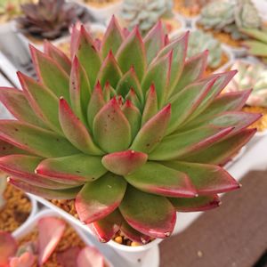 こんにちは✨ ちょっと嬉しい事に 多肉ちゃんが増えすぎて 紹介しきれてません😅 買いすぎ~(笑) この子はエケベリアで アガボイデスルメール というそうです🤗 赤い爪と、写真では 分かりにくいですが 葉っぱの表面が 繊維っぽくなってます。 いや、表現しづらいけど そんな感じになってます😅