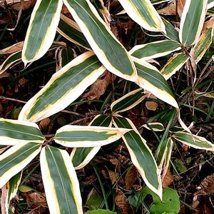 *クマザサ(隈笹) 葉に白いふち取り(隈)がある事が、名前の由来だそうです🌿 花言葉…孤高 (花は薄紫で、約30年の周期で咲くようです😊)