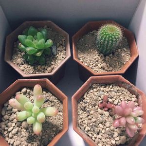 セダムちゃん達。 これはGSユーザーのpipiさんから頂いたものです💓 お互い多肉初心者で知り合って、親子のように年が離れてる私と仲良くしてくれる、とても可愛いpipiちゃんと「セダム交換」しました(*'▽'*)♪ 私が送ったものより盛モリの元気な苗を選んでくれて、手作りのリメ缶(左下)とデビーの葉挿しベビーまで頂いちゃいました💘✨😳 嬉しくて、どう植え直してどの鉢にするか、リメ缶には、あと何を足そうか・・・ニヤニヤしながら今夜は眠れそうにありません (*^▽^)/★*☆ pipiちゃん(*´v`*)ありがと💗