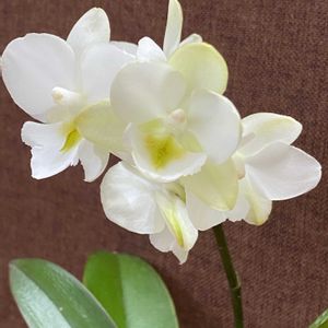 かわいい洋らんエランギスが咲き始めました😆💕 白い花びらの真ん中にオレンジのポッチがついて、どうしても日の丸弁当🇯🇵を思い出しちゃう😋 今お米売ってなくて困りますね💦 4月に蘭展からお迎えしたミニ胡蝶蘭エクエストリス セルレアも咲いたのですが思ってたよりお花が小粒🤣 あれ?白い菜の花が咲いたのかな?という感じでした💦 でも、ほんのりブルーが入って綺麗💕 先日埼玉県の花園グリーンセンターに行ってきました 広いハウスにいろんな植物がごちゃごちゃあって宝探し気分🤭 楽しいところでした♬ ピンクの花びらがひらひらしたミニ胡蝶蘭パープルジェムをゲット✨ 家に来てから咲いてくれた花は花びらにちょっとオレンジが入ってます 買った時はピンク一色だったような🤔 胡蝶蘭て花色が条件でいろいろ変わるな〜と思う今日この頃です😁